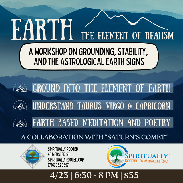 Join us at Spiritually Rooted in collaboration with Saturn’s Comet for a beginner friendly workshop exploring the Element of Earth in astrology. Across many cultures and traditions, the elements have been used to understand both the natural world and our inner experiences. In astrology, Earth represents realism, grounding, structure, and stability, and it shapes the energy of the zodiac signs Taurus, Virgo, and Capricorn.