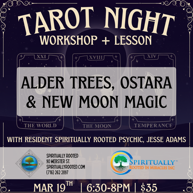 This March, we’ll explore the vibrant energy of Alder Tree Month, Ostara/Spring Equinox, and the upcoming New Moon in Aries. From the fresh push of spring growth to the awakening of new cycles, this gathering invites reflection, renewal, and action. Our tarot spread for the night is designed to help you tap into your inner courage, embrace new beginnings, and align with the natural rhythms of growth and transformation.